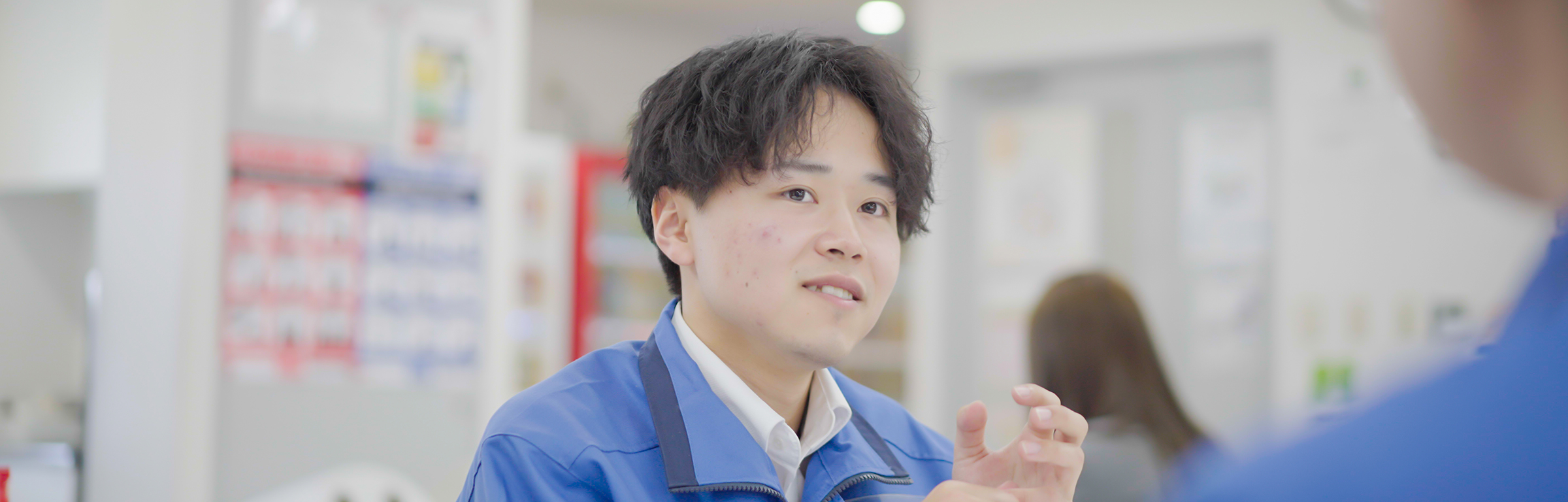Hirabayashi (năm thứ 6 tại công ty) x Miyamoto (năm thứ 2 tại công ty) Hai người này, được phân công vào bộ phận thực phẩm đông lạnh và hộp cơm bento, đóng vai trò quan trọng trong khâu hậu cần, bao gồm phân loại sản phẩm, quản lý vận chuyển và công tác hành chính. Họ đã thẳng thắn chia sẻ những ấn tượng ban đầu về công ty, từ tính chất "mới mẻ" cho đến "những khó khăn và sự trưởng thành" mà họ đã trải qua trong công việc.